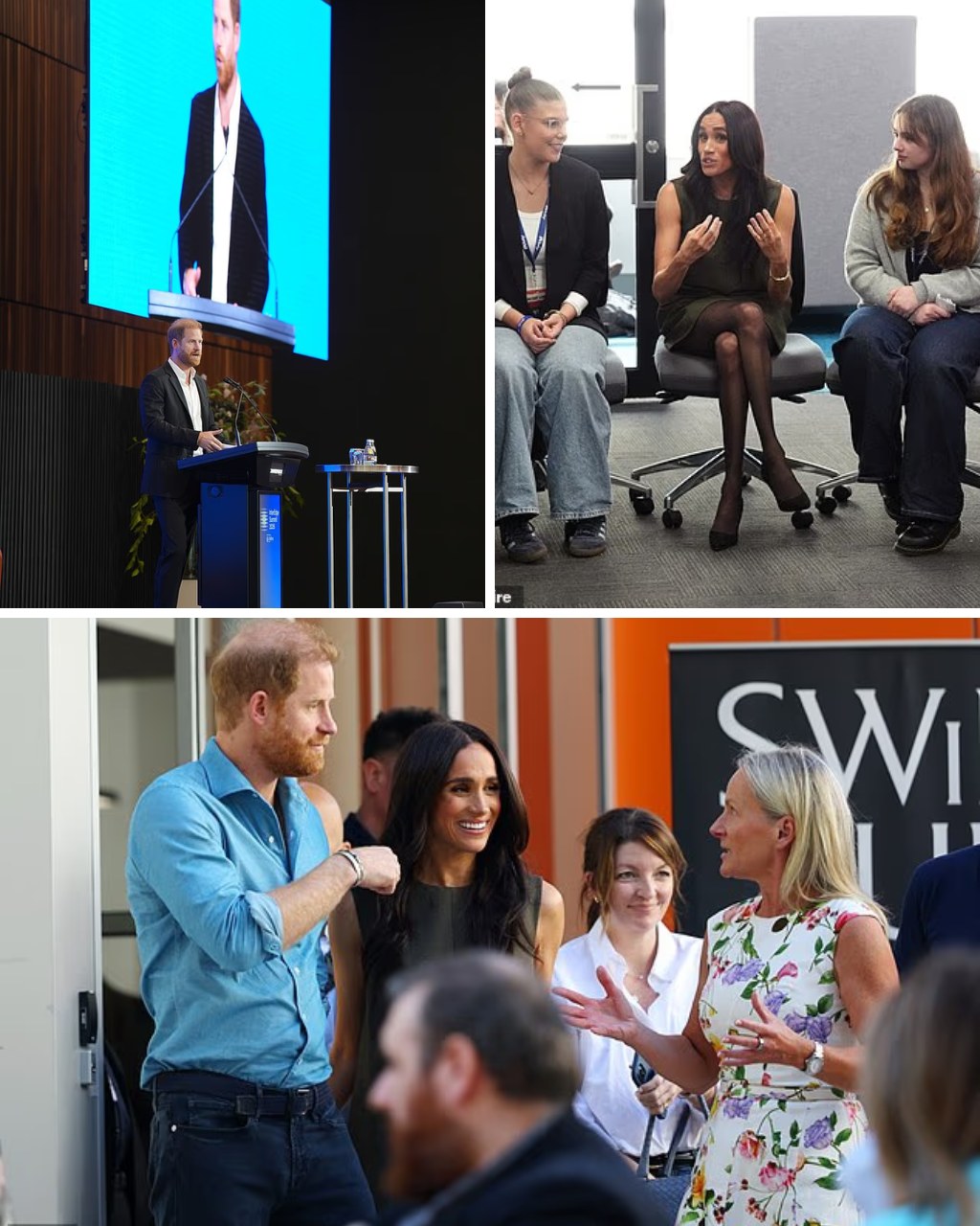 Harry then went to deliver the keynote speech at the InterEdge Summit in Melbourne Park on day three of the royal trip